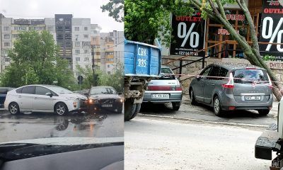 Șoferi ghinioniști. S-au tamponat într-o intersecție din capitală și au creat ambuteiaje în tot cartierul.