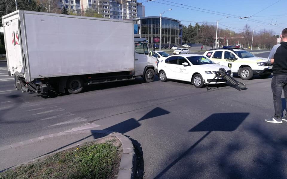Clipe de coșmar pentru un bărbat din Chișinău. Acesta a fost lovit violent de un taxi, în timp ce se deplasa cu trotineta sa electrica, pe...