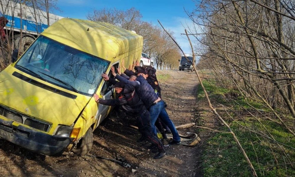 Un șofer de microbuz a trecut prin clipe de coșmar. Acesta a derapat cu vehiculul său de pe traseu și a ajuns într-un șanț.
