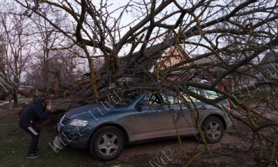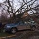 O mașină a fost zdrobită de un copac căzut.