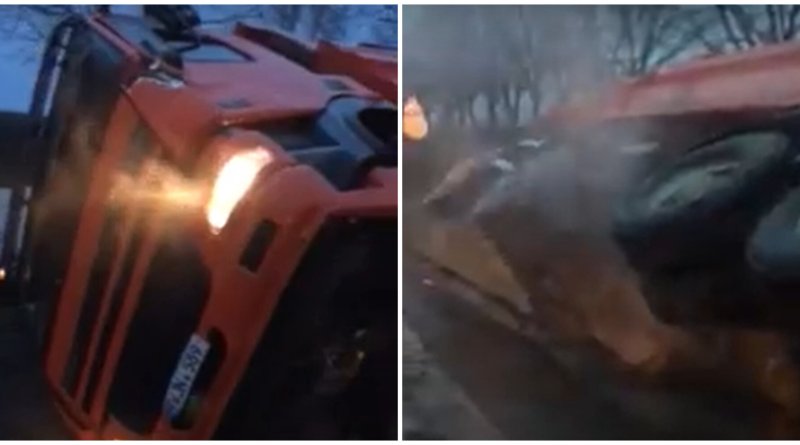 Condițiile climaterice și neadaptarea la intemperie au provocat un nou accident rutier cu implicarea unui autocamion.