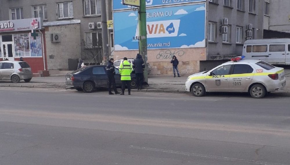 Accident în sectorul Botanica din capitală. Un șofer a intrat cu mașina într-un pilon.