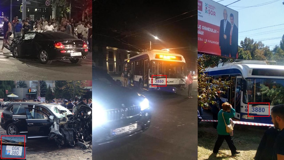 Momentul când un Porsche a tamponat un troleibuz în după-amiaza zilei de ieri în sectorul Buiucani al capitalei a fost surprins de o cameră de supraveghere.