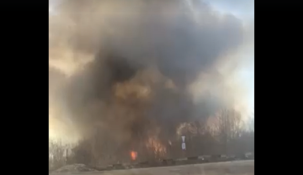 Incendiu de vegetație la Bucovăț, raionul Strășeni în apropiere de o benzinărie.