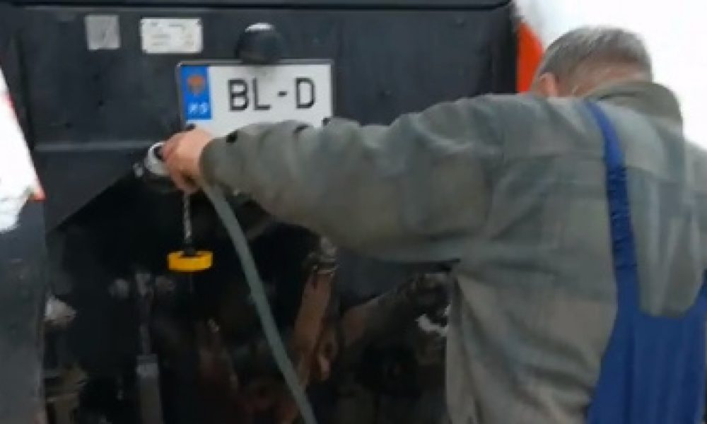 Muncitorul de la deszăpezire, care a fost filmat pe 23 ianuarie, în timp ce scotea motorină dintr-un tractor pentru deszăpezire a drumurilor riscă să fie cercetat...