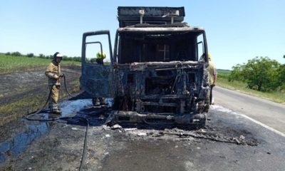 Incendiu devastator, pe traseul R26. Un autocamion încărcat cu 24 de tone de porumb a luat foc din mers.