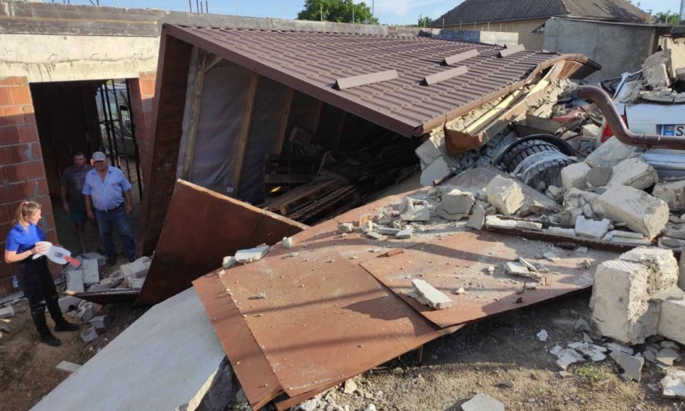 S-a prăbușit garajul peste el. Un bărbat de 43 de ani a devenit captiv în propria curte și a rămas blocat sub o placă din beton.