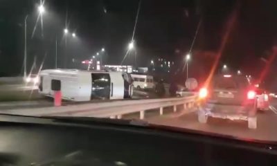 Accident grav, la intrarea în orașul Ialoveni. Un microbuz destinat transportului de pasageri s-a răsturnat în urma unui impact violent cu un autoturism.