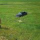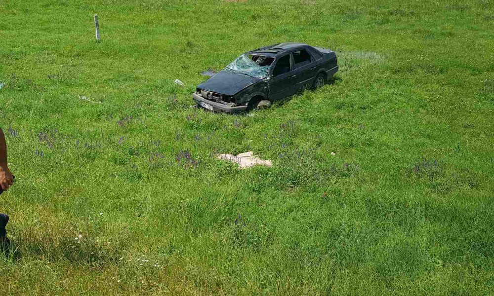 A scăpat nevătămat după ce mașina la volanul căreia se afla a derapat de pe șosea și s-a inversat.