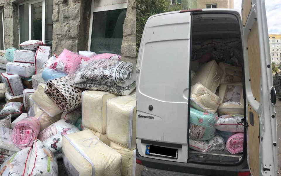 Lenjerie de pat, perne și cuverturi în valoare de 25 de mii de lei – asta au ridicat polițiștii din depozitul improvizat și mașina unui afacerist...