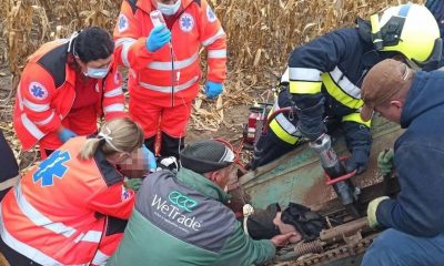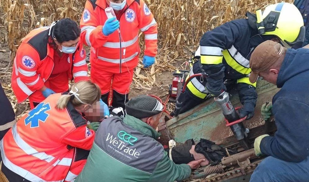 Salvatorii din Comrat au descarcerat un bărbat blocat într-un colector de porumb.