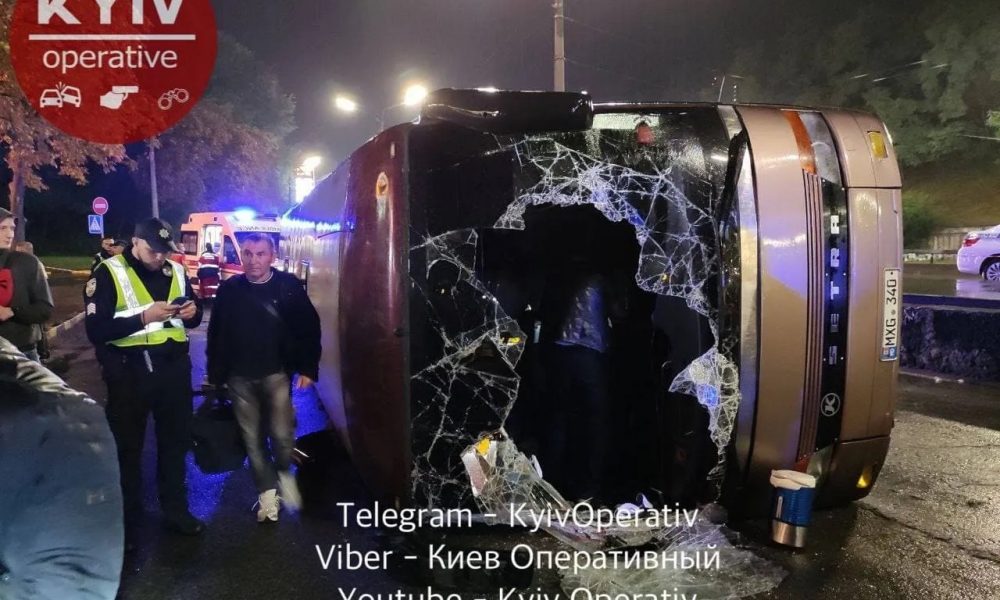 Un autocar de pe ruta Chișinău-Moscova s-a inversat pe o stradă din Kiev, Ucraina.