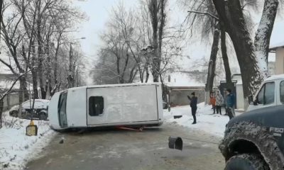 Accident grav, în centrul capitalei. Un microbuz cu angajați de la "Spații Verzi" s-a inversat după ce s-a tamponat cu un alt vehicul.