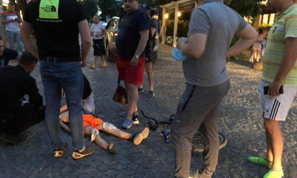 Clipe de panică pentru un minor care se plimba cu Bicicleta pe strada pietonală din Chișinău. Un șofer a dat cu mașina peste el.