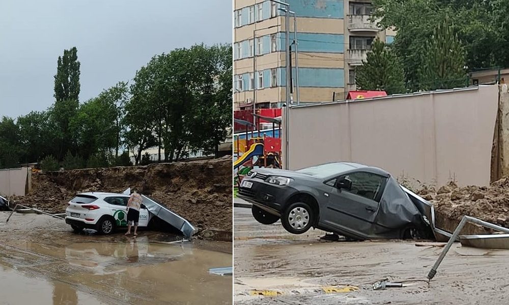Ploaia torențială a făcut prăpăd în capitală. Străzile s-au transformat în râuri, iar unele mașini au rămas blocate în șuvoaiele uriașe de apă.