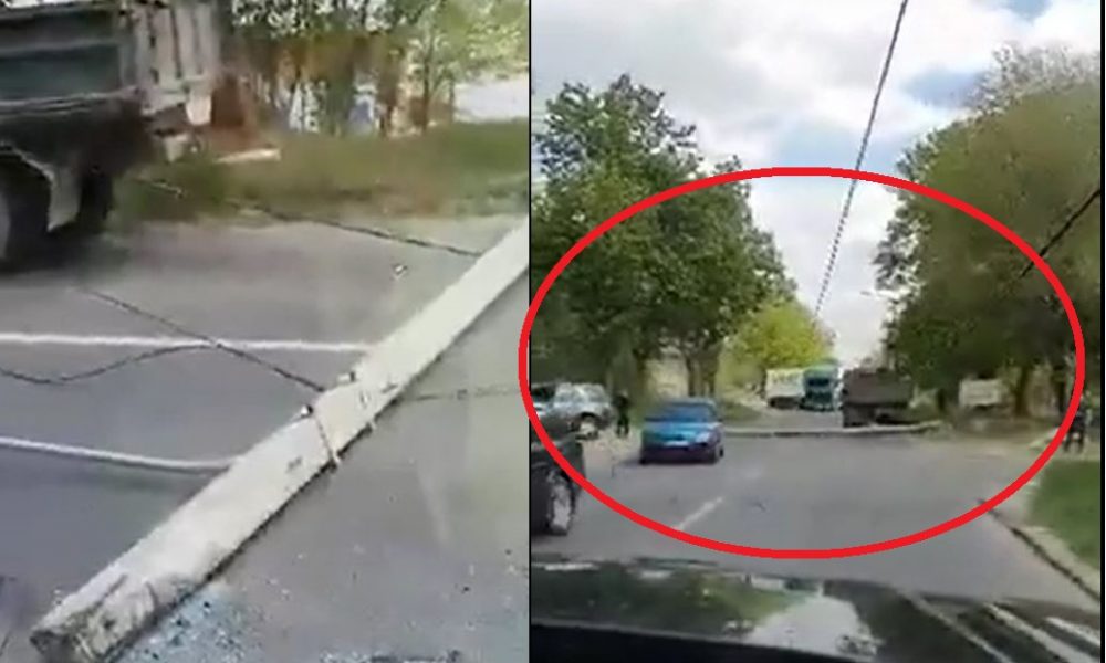 Grav accident pe strada Petricani. Un camion a doborât un stâlp, iar pilonul a căzut peste o mașină.