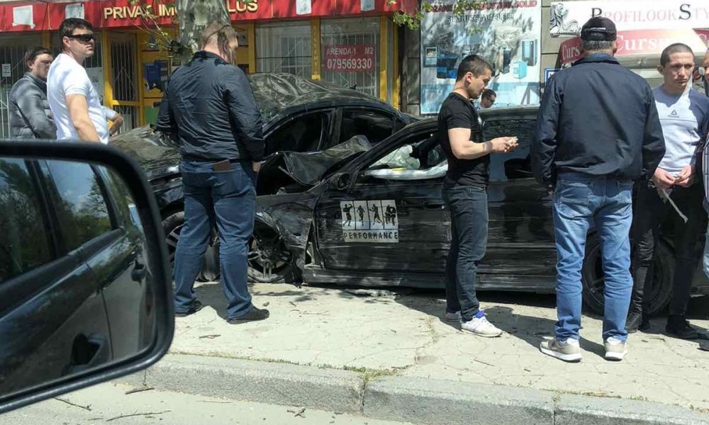 Accident cumplit, în capitală. Două BMW-uri s-au lovit și au distrus un Volkswagen, parcat la marginea drumului