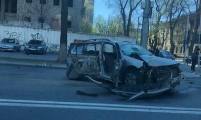 Accident cumplit în centrul capitalei. O mașină a fost făcută țăndări iar pasagerul care se afla în vehicul a zburat peste geamul mașinii.
