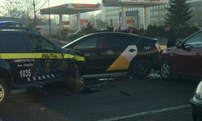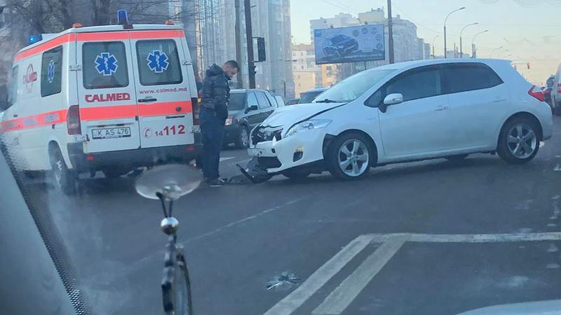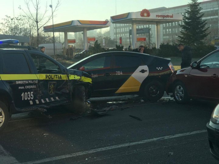Carambol matinal în sectorul Buiucani al capitalei. Patru mașini, printre care și un autoturism al poliției, s-au tamponat violent pe strada Mihai Viteazu.