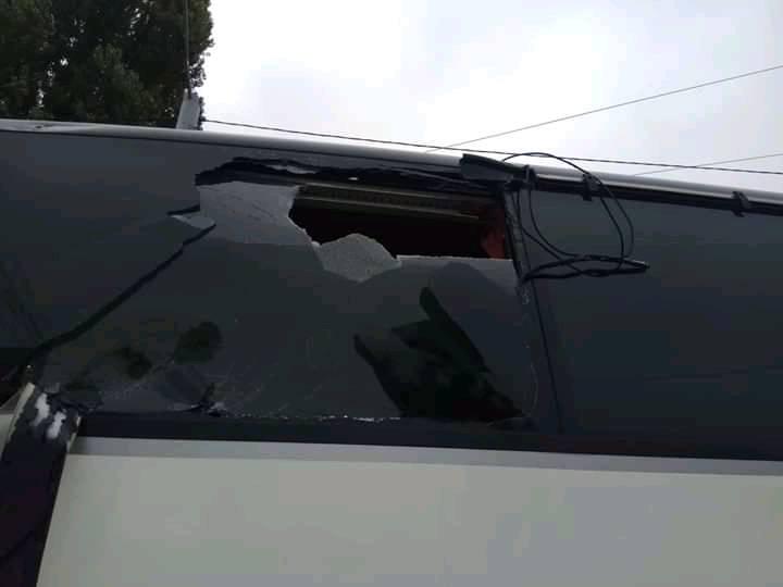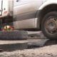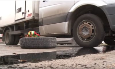 S-a ales cu roată de la microbuz distrusă și cu motorul avariat după ce a dat cu vehiculul într-o groapă săpată de drumari.