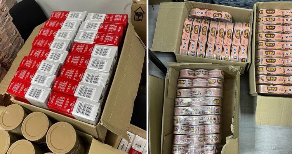 Cutii pline cu ton, cafea și articole vestimentare în cantități comerciale, depistate într-un autocar care revenea din Italia.