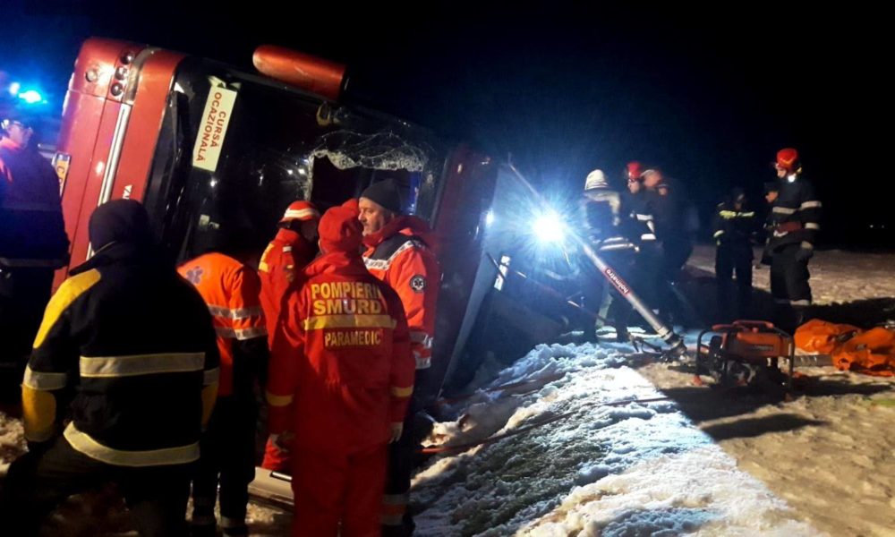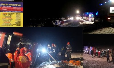 Noapte de coșmar, pentru cei 12 moldoveni care se întorceau din Italia, iar autocarul cu care se deplasau s-a răsturnat într-o râpă de pe un drum...