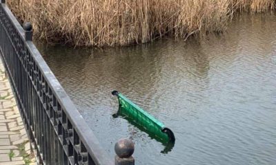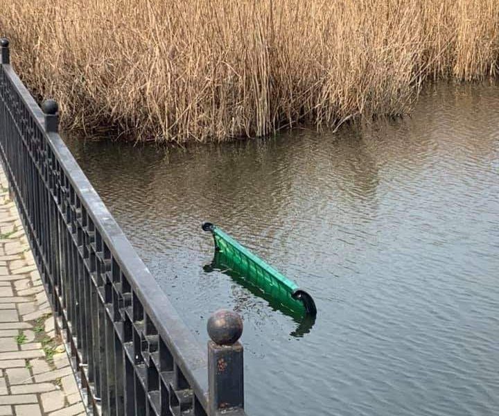В столичном парке Валя Морилор неизвестные выбросили скамейку в озеро.