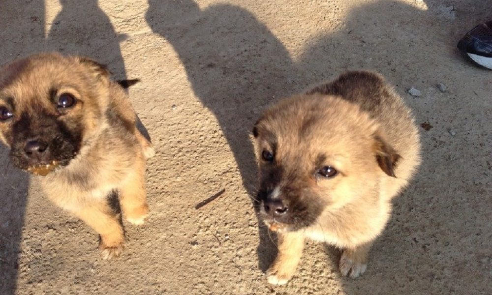 Doi cățeluși au murit sub roțile unui microbuz. Oamenii au sunat la poliție.