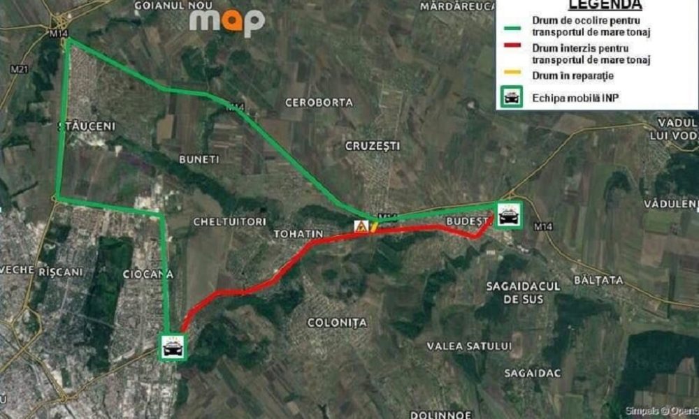 Circulația transportului pe drumul local L455 (Chișinău – Budești - M5), tronsonul (acces comuna Budești – M5) va fi sistată începând de astăzi, 4 aprilie.