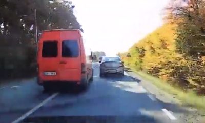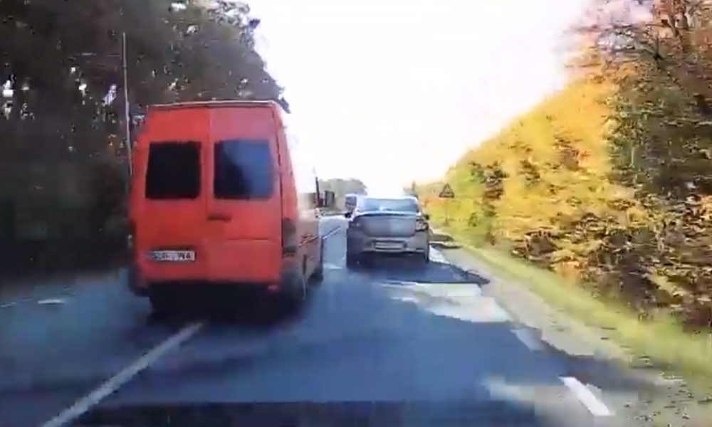 Depășire criminală în Maramureș. Un microbuz, înmatriculat în R.Moldova, aproape de impactul cu un TIR!