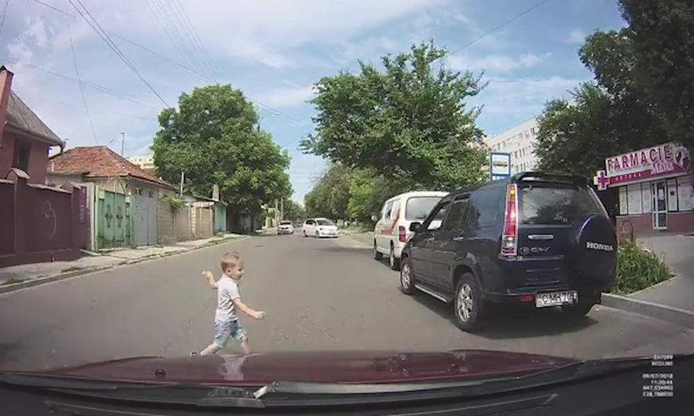 UN COPIL NEATENT A FOST LA UN PAS SĂ FIE CĂLCAT DE O MAȘINĂ PE O STRADĂ DIN SECTORUL BUIUCANI DIN CHISINAU.