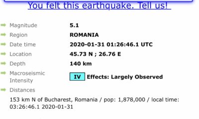 Сильное землетрясение произошло этой ночью в Румынии. Толчок ощутили и в Молдове. По данным сейсмологов, магнитуда составила 5.1 в эпицентре. Землетрясение произошло на глубине 140 километров...