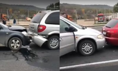 Trei mașini s-au tamponat în lanț pe traseul Chișinău-Orhei, în apropiere de satul Ratuș, raionul Criuleni.