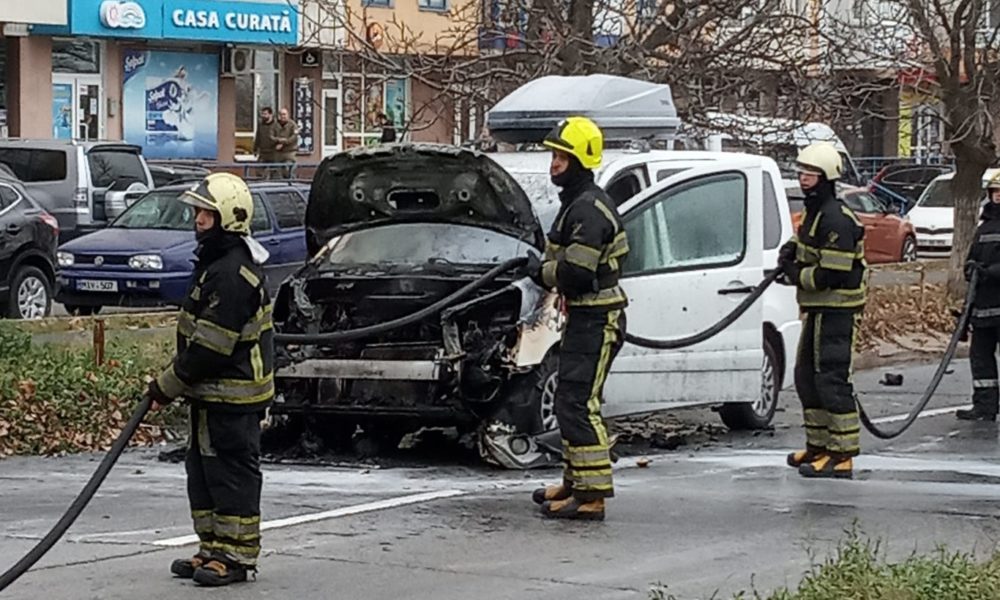 Mare ghinion pe capul unui șofer din capitală, după ce mașina acestuia a ars ca o torță în plină zi.
