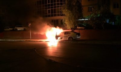O mașină care aparține unei firme de taxi, parcată pe o stradă din sectorul Botanica al capitalei a fost mistuită de flăcări.