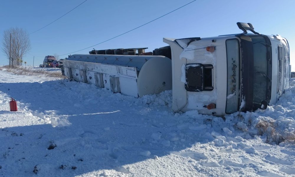O autocisternă, cu numere de înmatriculare din Republica Moldova, ce transporta vin, s-a răsturnat în România.