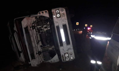 Un șofer de camion a fost rănit și a ajuns la spital, după vehiculul pe care-l conducea s-a răsturnat într-un șanț.