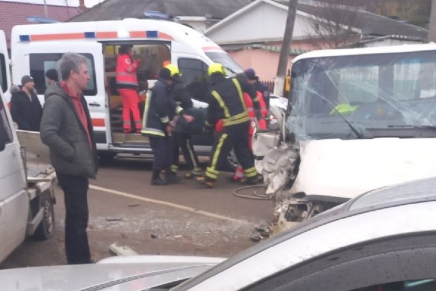 Un Kamaz și un microbuz de model Ford s-au ciocnit ieri, pe traseul R30.