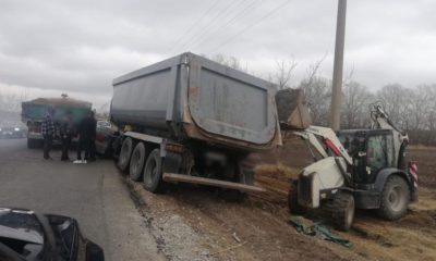 Nu s-a isprăvit cu ghidajul. Șoferul unui autocamion, în vârstă de 43 de ani, s-a pomenit cu vehiculul său de mare tonaj răsturnat în șanț.