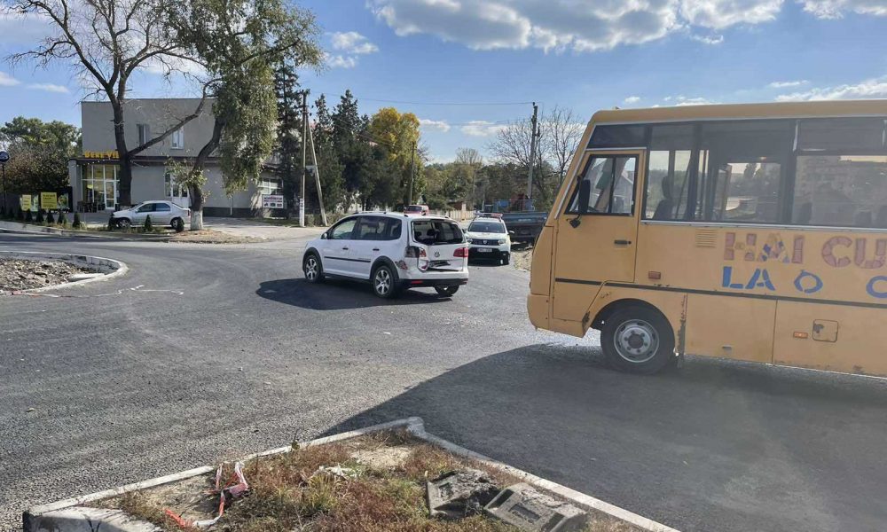 Autobuz școlar, implicat într-un accident rutier, pe o stradă din orașul Strășeni.