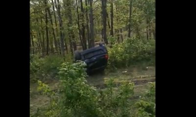 A zburat peste parapetul drumului și a aterizat cu roțile în sus. Un șofer a scăpat ca prin urechea acului după un grav accident de circulație.