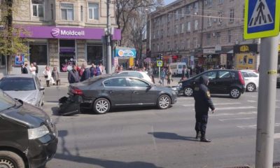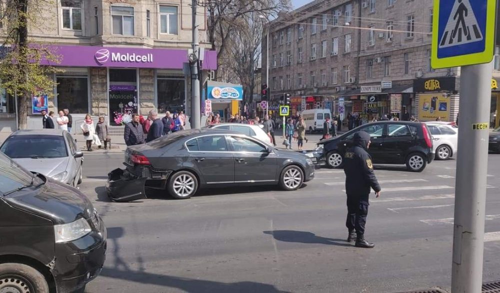 Accident în lanţ, în centrul Capitalei. Trei mașini s-au tamponat violent la intersecţia bulevardului Ştefan cel Mare și Sfânt cu strada Armenească.
