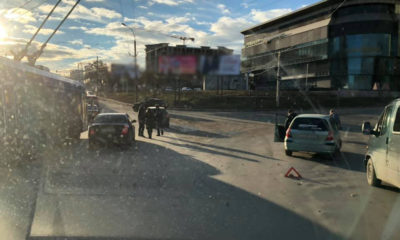 Minute de panică pentru pasagerii unui troleibuz de rută din Chișinău. Vehiculul în care se aflau s-a tamponat cu un autoturism.