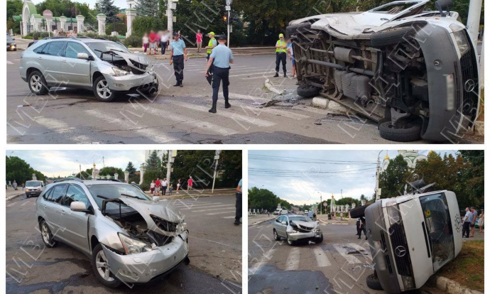Un automobil și un microbuz s-au ciocnit violent pe o stradă din Tiraspol.