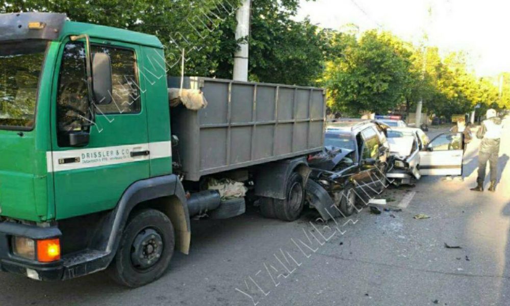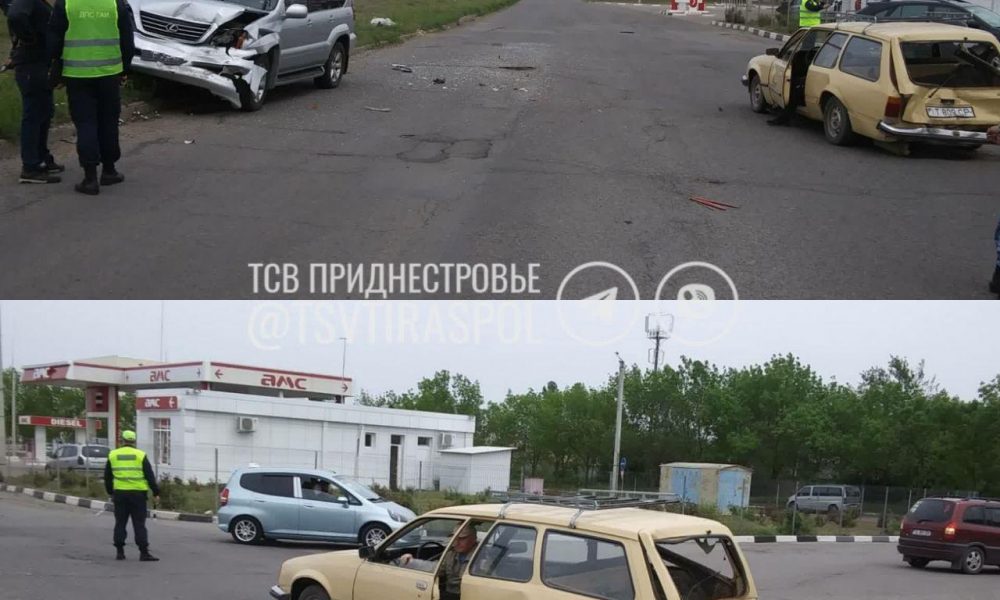 Grav accident pe o stradă din orașul Tiraspol. Două mașini s-au transformat în mormane de fiare după ce s-au tamponat violent.