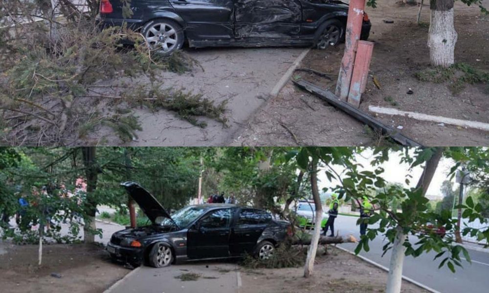 O mașină a zburat mai întâi într-un stâlp, apoi a distrus gardul unei gospodării, la Tiraspol.