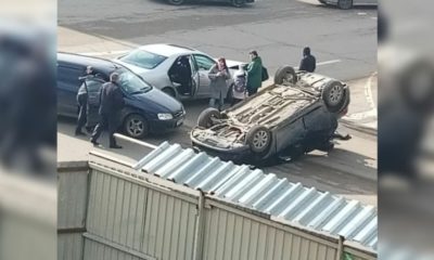 Accident violent la Tiraspol. O mașină a ajuns cu roţile în sus, după ce s-a tamponat cu un alt autoturism.