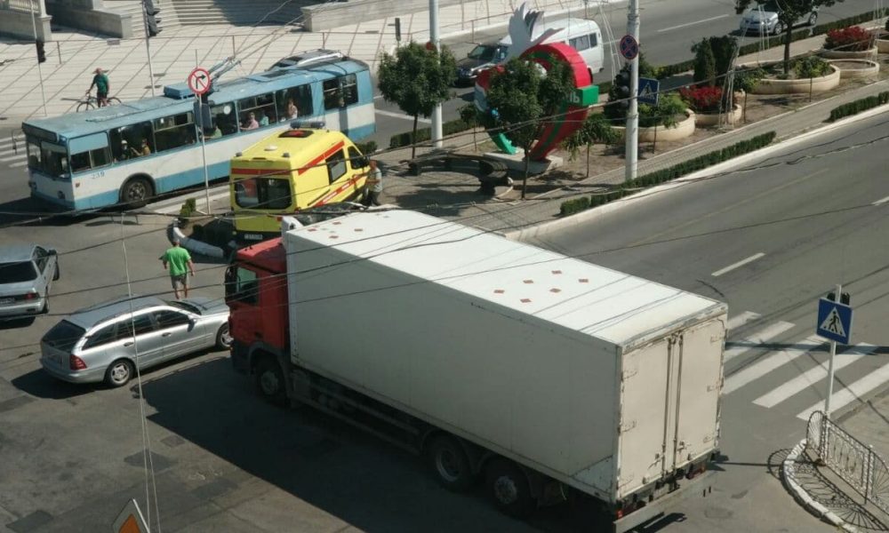 Accident de proporții ziua în amiaza mare în orașul Tiraspol. Trei vehicule au blocat mișcarea pe carosabil după ce s-au tamponat violent.