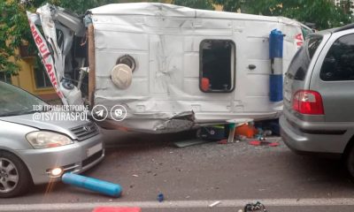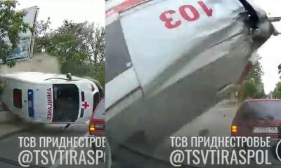 Imagini cu impact emoțional. O ambulanță s-a inversat după ce s-a tamponat cu o mașină, apoi s-a izbit în altele trei.