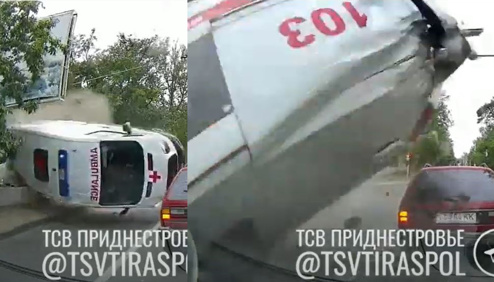 Autospeciala se afla în misiunea de serviciu, însă pentru a evita accidentul, a ieșit de pe carosabil și s-a tamponat într-o bancă de pe trotuar